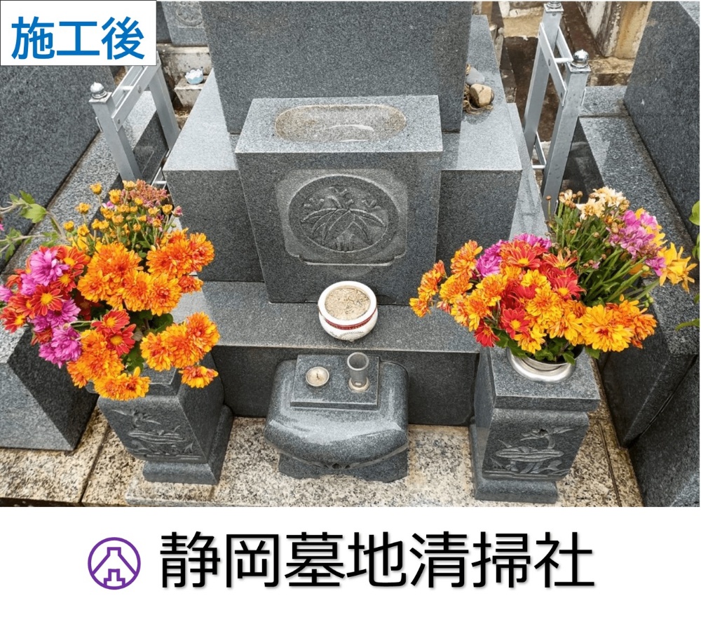 こちらは全て手作業による清掃を行いました。墓石全体に光沢が出ました。